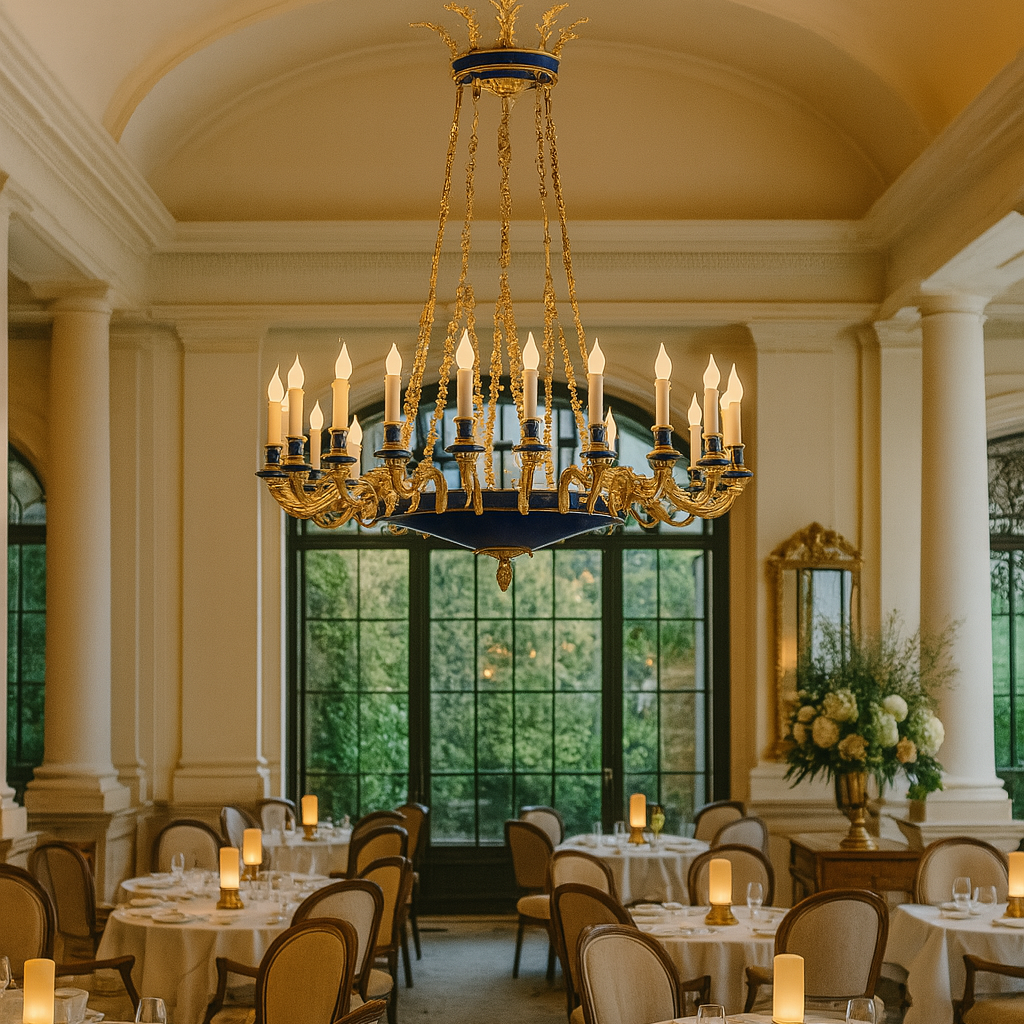 Rinnova il tuo spazio con timeless . Scopri lampadario classico a 24 luci in ottone dipinto a mano: Ottone naturale e i dettagli dipinti a mano in blu zaffiro conferiscono un tocco di modernità alla sua forma classica. Valorizza il tuo arredamento con questo raffinato elemento decorativo.