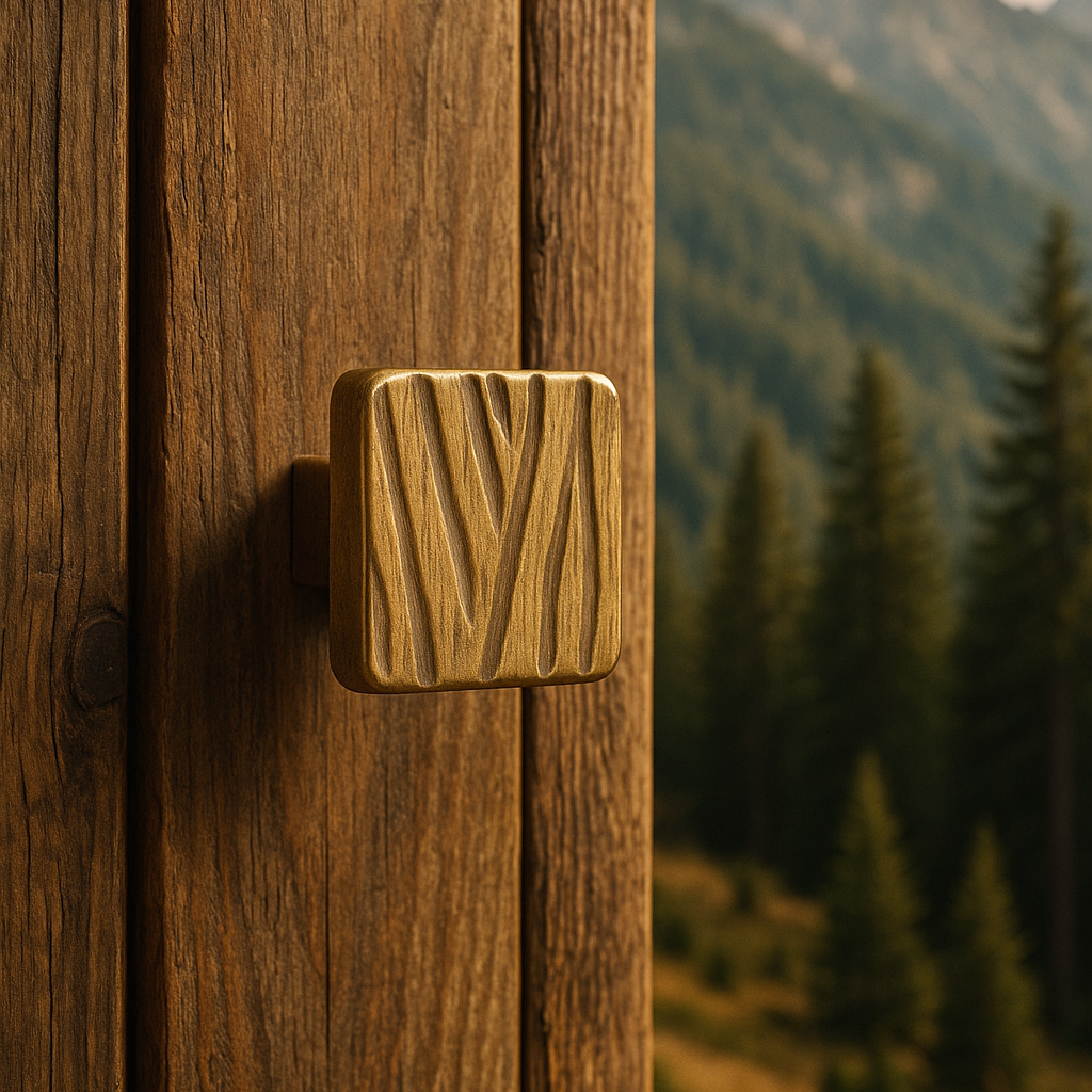 pomello quadrato in ottone con finitura strutturata e tattile e motivo a rilievo inciso. Realizzato a mano in Italia, è perfetto per valorizzare mobili e cassetti con un tocco elegante e contemporaneo.