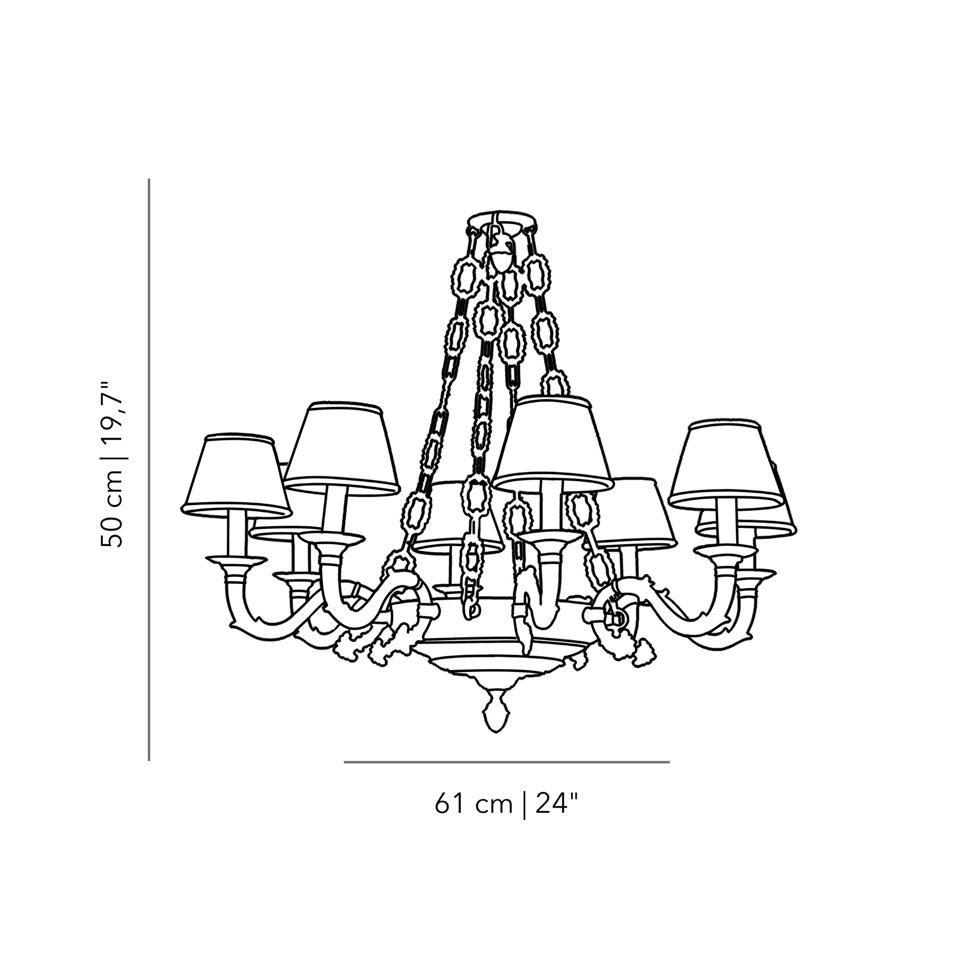 Valorizza i tuoi spazi con il nostro maestoso lampadario a 12 luci, caratterizzato da una raffinata struttura in bronzo impreziosita da graziose catene ed eleganti paralumi in tessuto. Questo lampadario fonde perfettamente opulenza e meticolosa maestria artigianale, diffondendo una luce affascinante e lussuosa in tutto l'ambiente. Illumina i tuoi spazi con grandiosità e raffinatezza. Shop now portare nella tua casa la bellezza intramontabile del lampadario a 12 luci con dettagli in bronzo, catene e paralumi in tessuto.