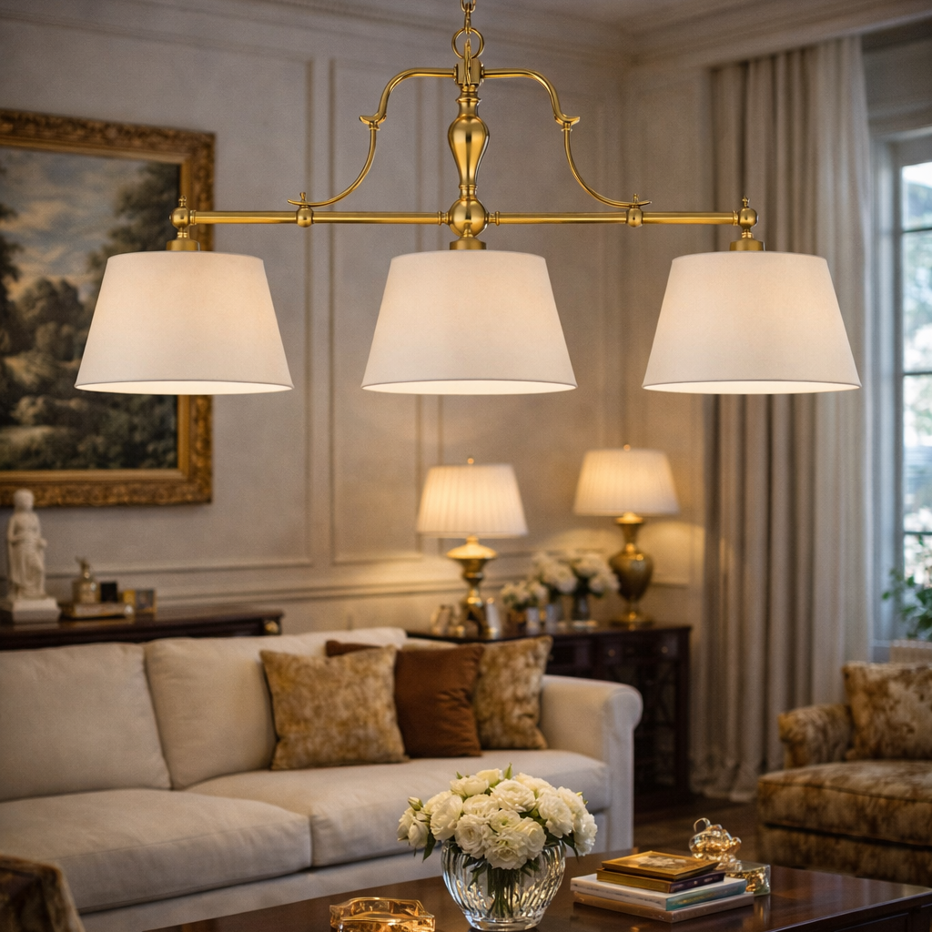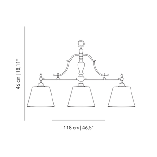 Migliorate la vostra sala giochi o la vostra sala da pranzo con il nostro lampadario classico Gambrinus a tre luci, caratterizzato da una raffinata struttura in bronzo ed eleganti paralumi in tessuto. Questo lampadario fonde con naturalezza il design classico con una meticolosa maestria artigianale, diffondendo una luce calda e accogliente nel vostro spazio. Illuminate i vostri ambienti con timeless e sofisticato. Shop now portare nella vostra casa la bellezza intramontabile del lampadario a tre luci con dettagli in bronzo e paralumi in tessuto.