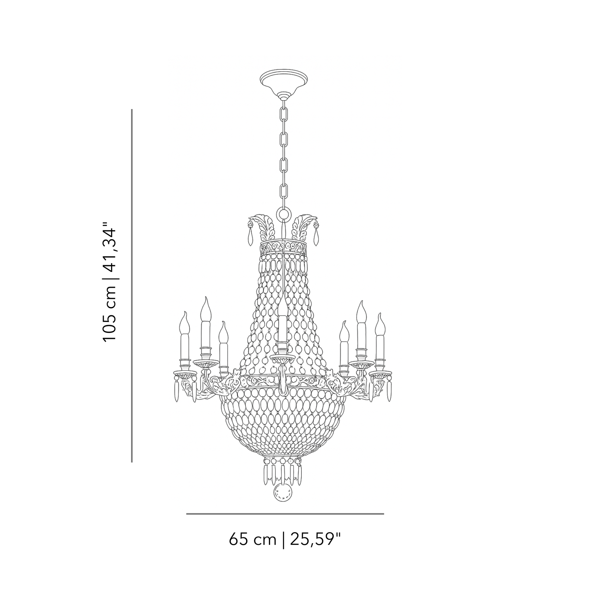 Valorizza i tuoi spazi con il nostro raffinato lampadario a 6 luci, caratterizzato da una struttura timeless impreziosita da scintillanti gocce di cristallo. Questo lampadario fonde perfettamente il design classico con una meticolosa lavorazione artigianale, diffondendo una luce affascinante e opulenta in tutto l'ambiente. Illumina i tuoi spazi con eleganza e lusso. Shop now portare nella tua casa la bellezza intramontabile del lampadario a 6 luci con dettagli in bronzo e gocce di cristallo.