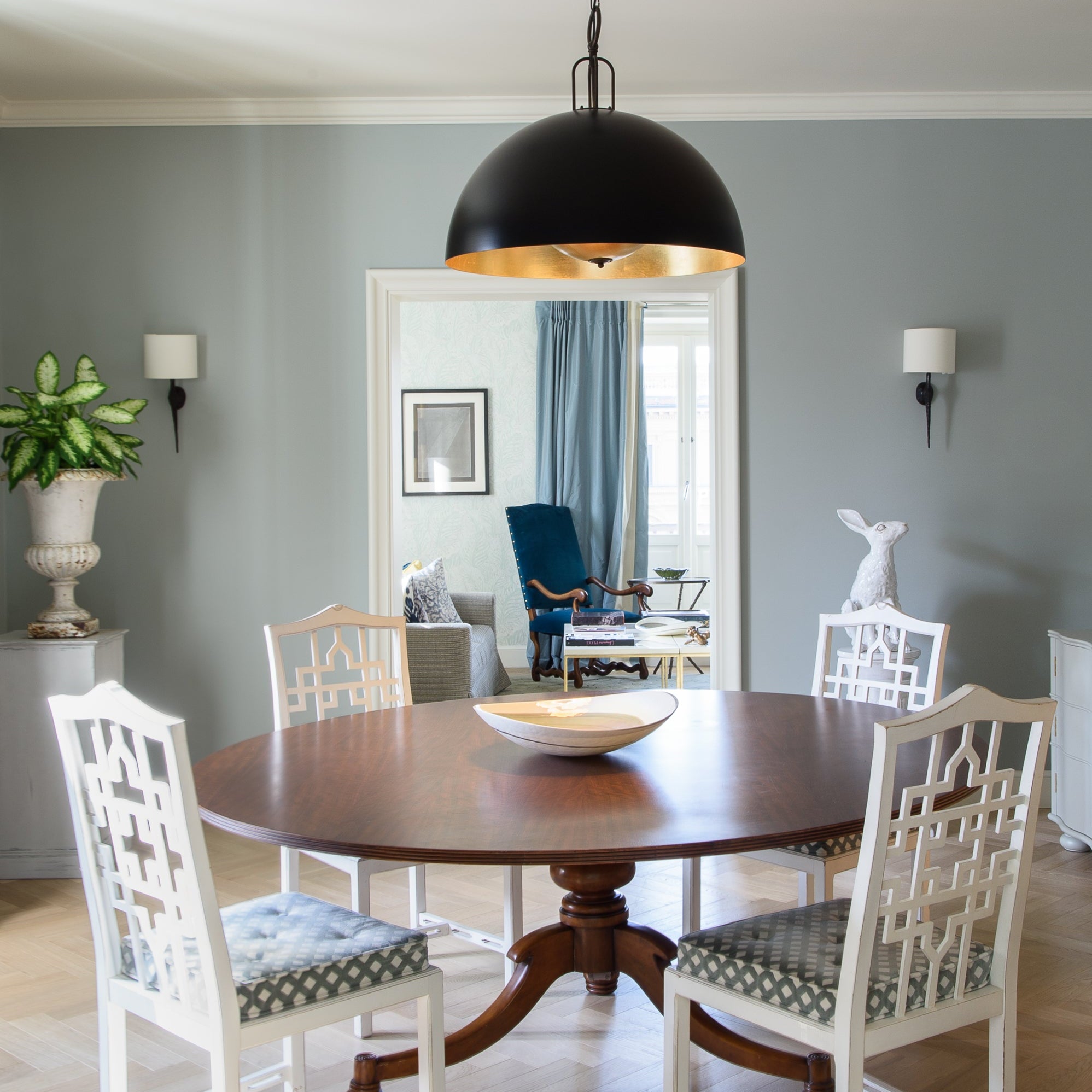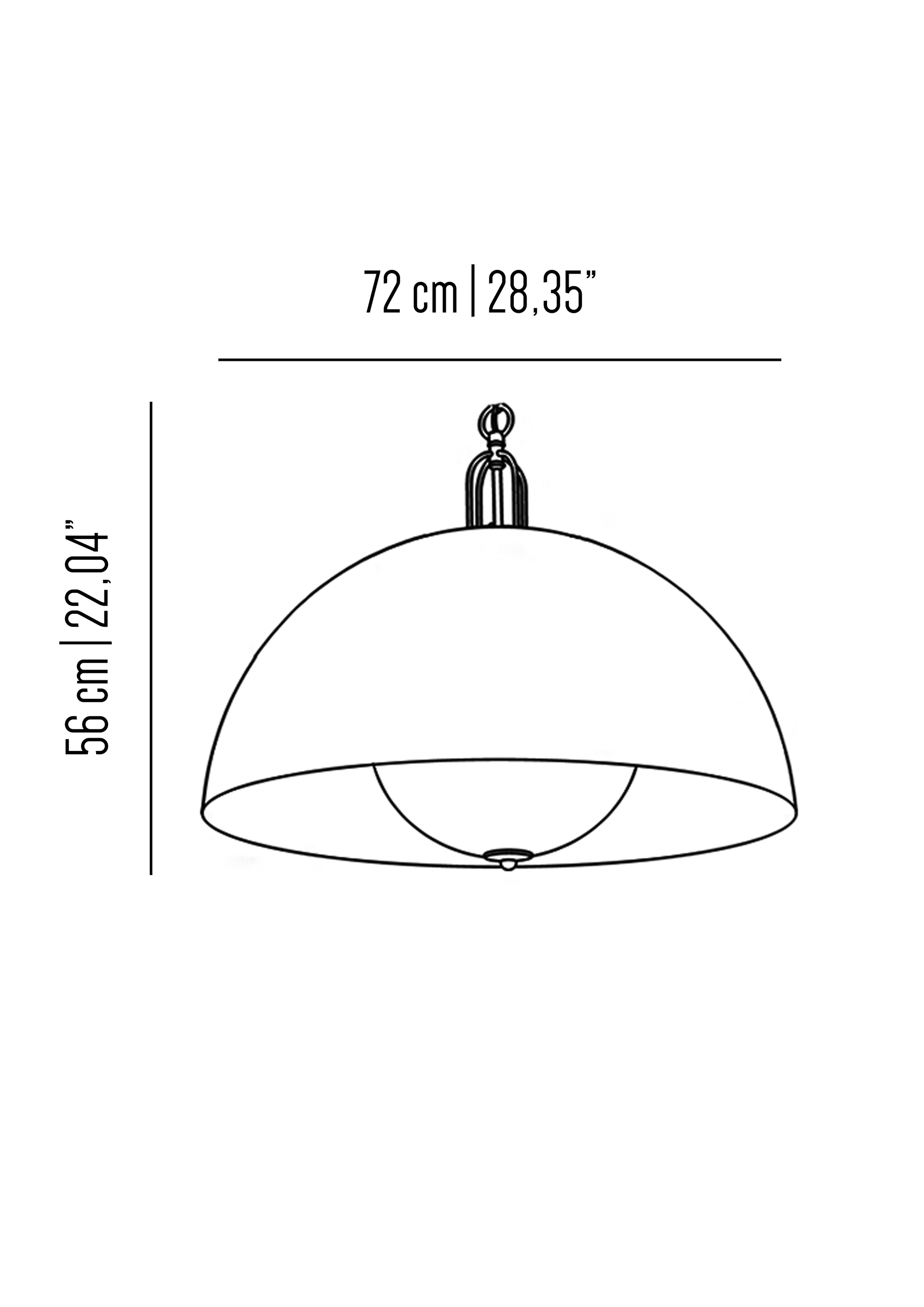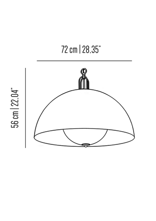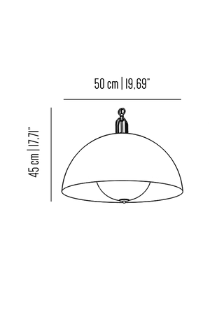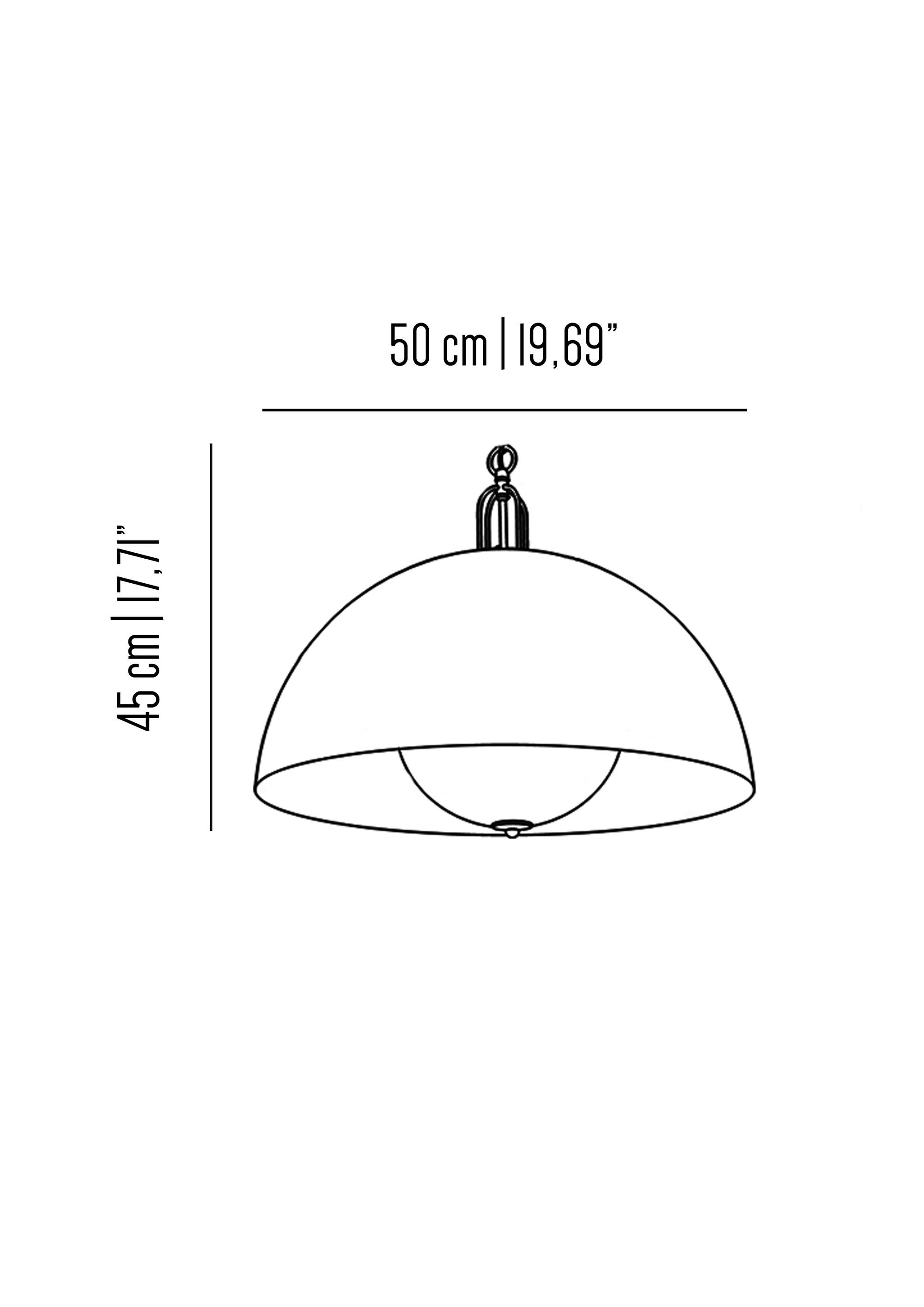 Mezza sfera di circa 1 metro di diametro in ferro verniciato dallo stile vintage-industriale, personalizzabile sia nel colore del paralume esterno che nella finitura interna. L'illuminazione a LED garantisce un'ottima luminosità ed efficienza energetica.