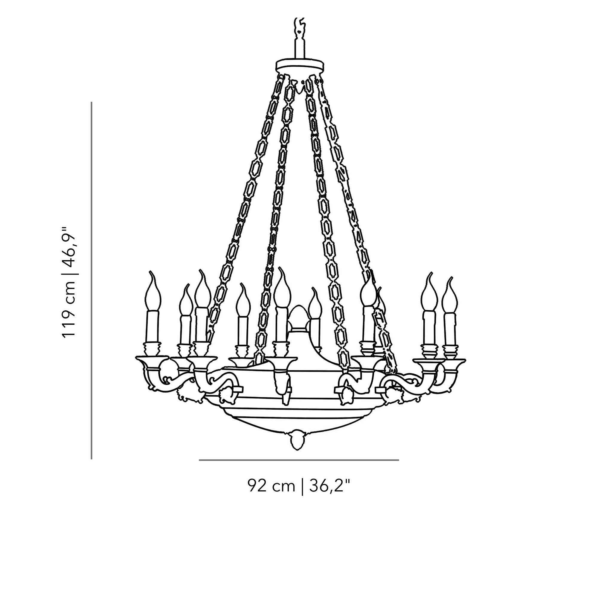 Elevate your space with our grand 12 Lights Chandelier, showcasing a majestic bronze structure adorned with graceful chains. This chandelier seamlessly blends opulence with meticulous craftsmanship, casting a mesmerizing and luxurious glow throughout your setting. Illuminate your surroundings with elegance and grandeur. Shop now to bring the enduring beauty of the 12 Lights Chandelier with bronze accents and cascading chains into your home.