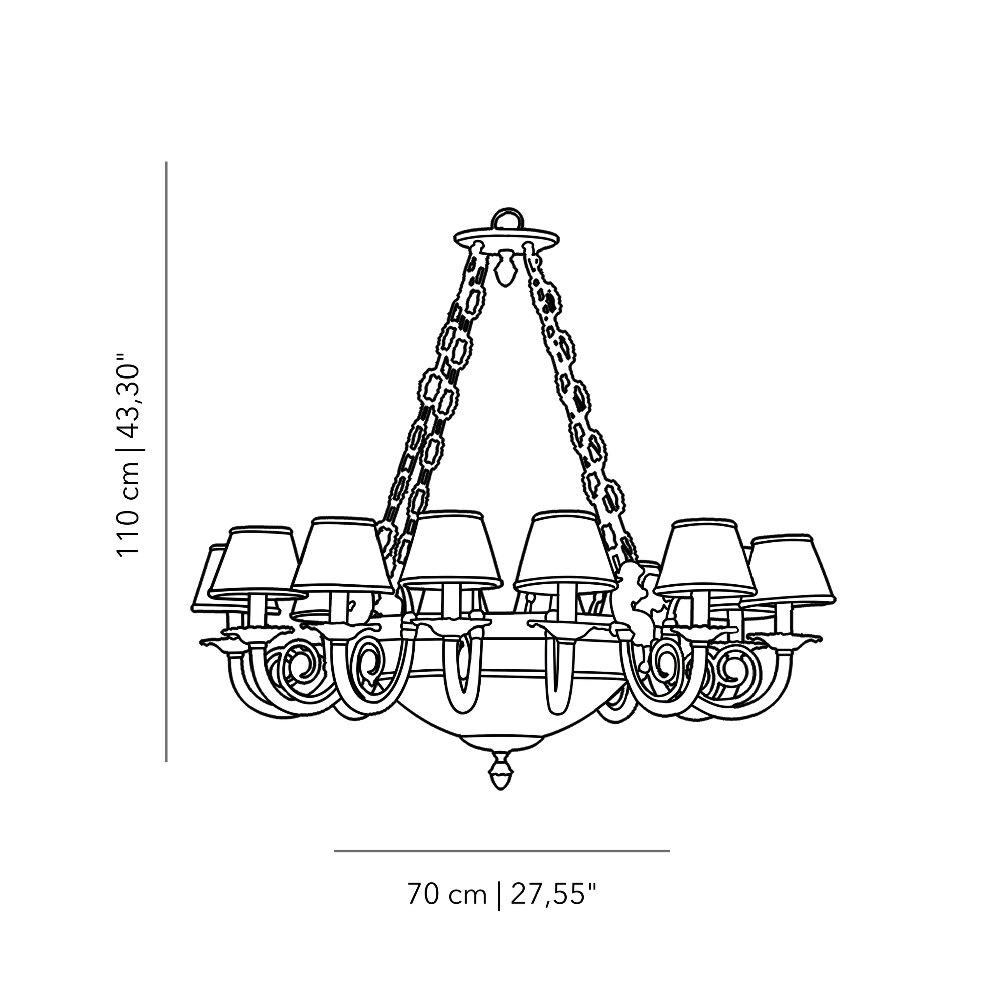 Elevate your space with our grand 12 Lights Chandelier, showcasing an exquisite bronze structure adorned with hand-grinded crystal accents and elegant fabric lampshades. This chandelier seamlessly blends opulence with meticulous craftsmanship, casting a mesmerizing and luxurious glow throughout your setting. Illuminate your surroundings with grandeur and sophistication. Shop now to bring the enduring beauty of the 12 Lights Chandelier with bronze accents, hand-grinded crystal, and fabric lampshades into your home.