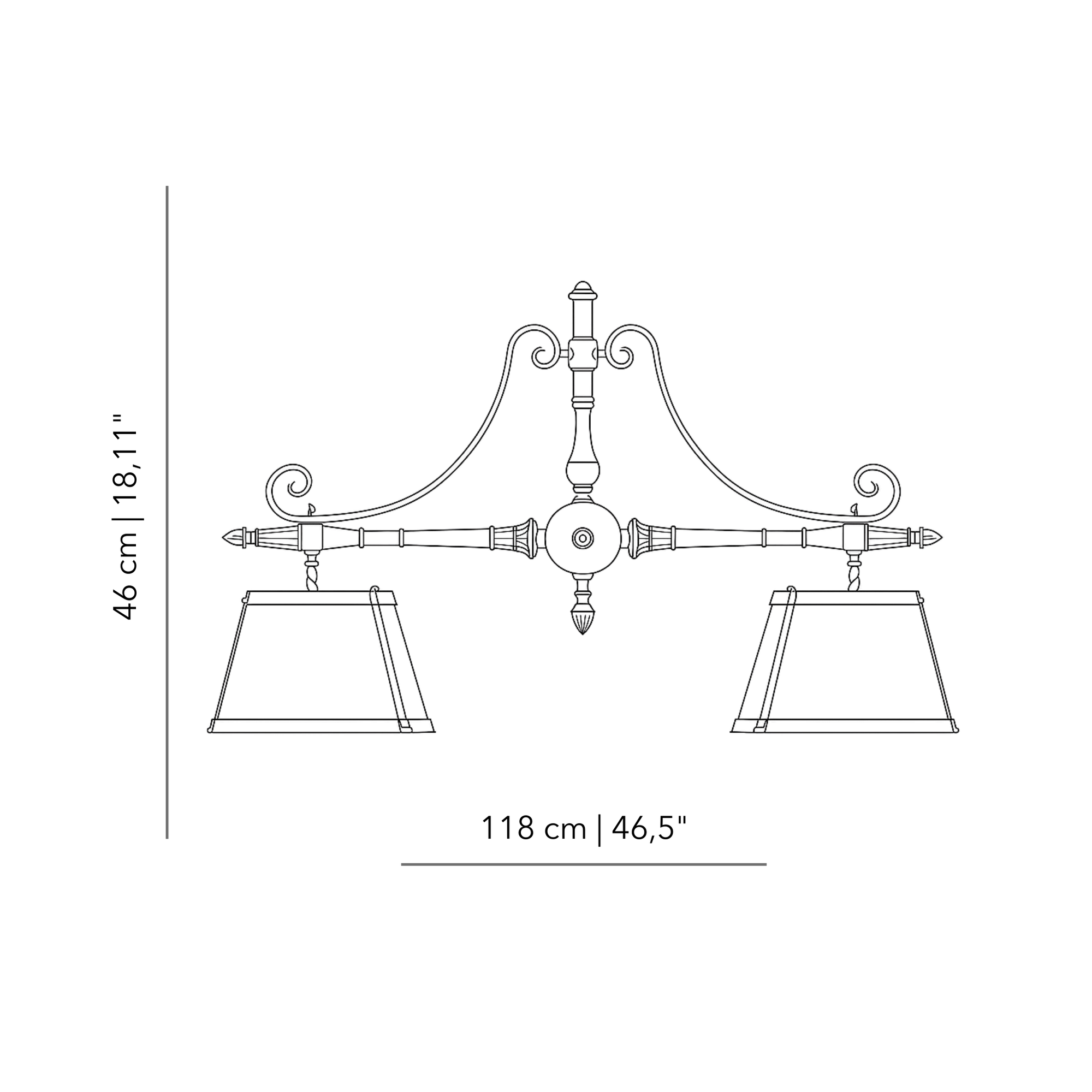 Measures: h 46 x 118 no paralumi