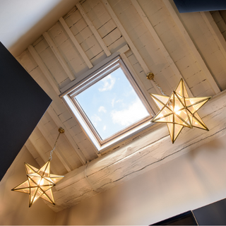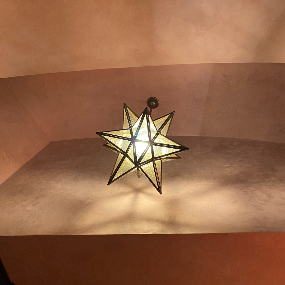The three-dimensional star chandelier of the Geometrie line is made of brass and glass and can be declined in many sizes from extra small to double large. The star represents one of the most classic shapes proposed by the master craftsmen of the Bronzetto; in fact, in the Florentine tradition this characteristic shape was the symbol of the guild of the Judges and Notaries of Florence during the Middle Ages, lamps and chandeliers of this manufacture can still be found of originals in the historic buildings of the center.