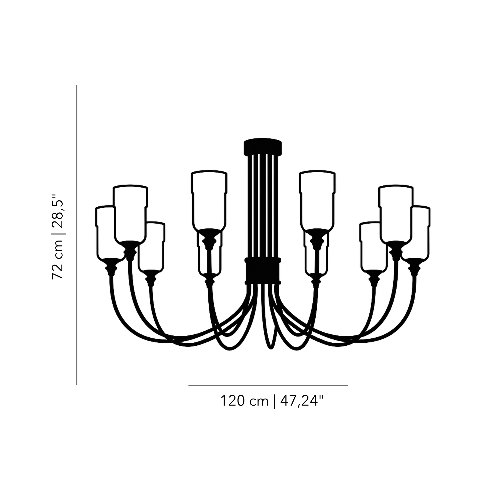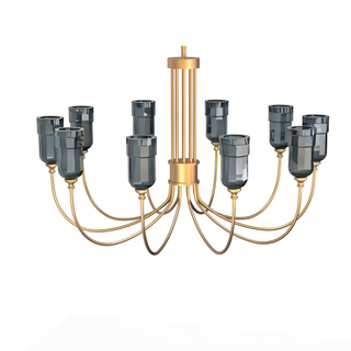 Two-tier brass chandelier from the Jacaranda collection, featuring elegant hand-blown smoked glass shades. A bold yet balanced statement piece, ideal for both classic and contemporary interiors.