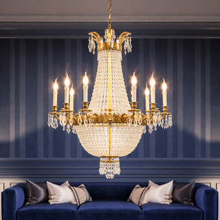 Elevate your space with our exquisite 10 Lights Chandelier, featuring a timeless bronze structure adorned with stunning crystal drops. This chandelier seamlessly blends classic design with meticulous craftsmanship, casting a mesmerizing and opulent glow throughout your setting. Illuminate your surroundings with grace and luxury. Shop now to bring the enduring beauty of the 10 Lights Chandelier with bronze accents and crystal drops into your home.